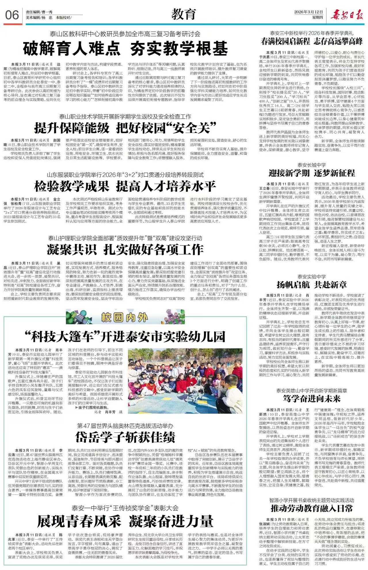 【泰安日报】泰安长城中学迎接新学期 逐梦新征程
