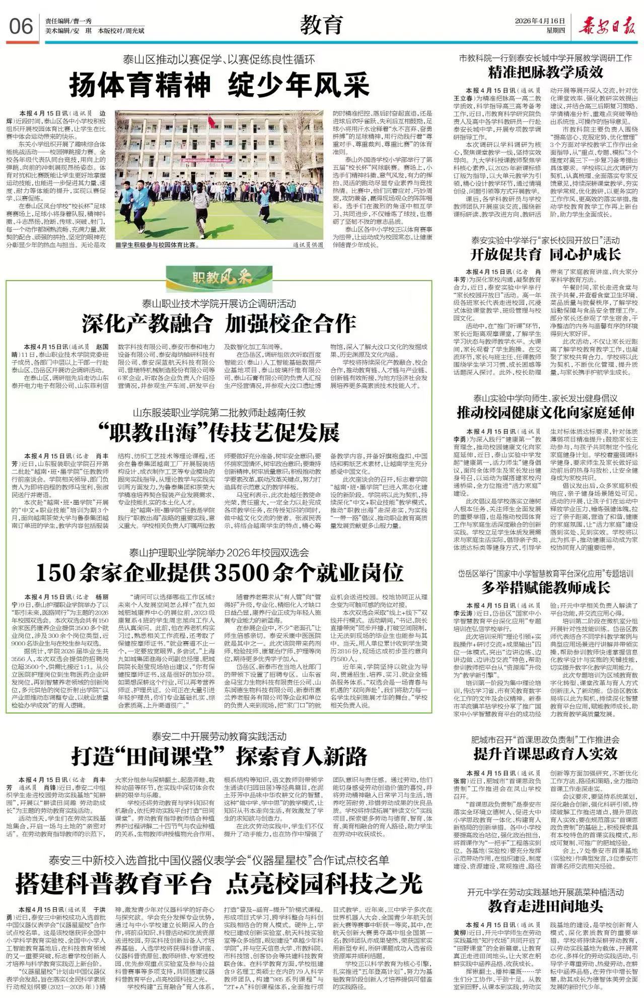 【泰安日报】泰安长城中学组