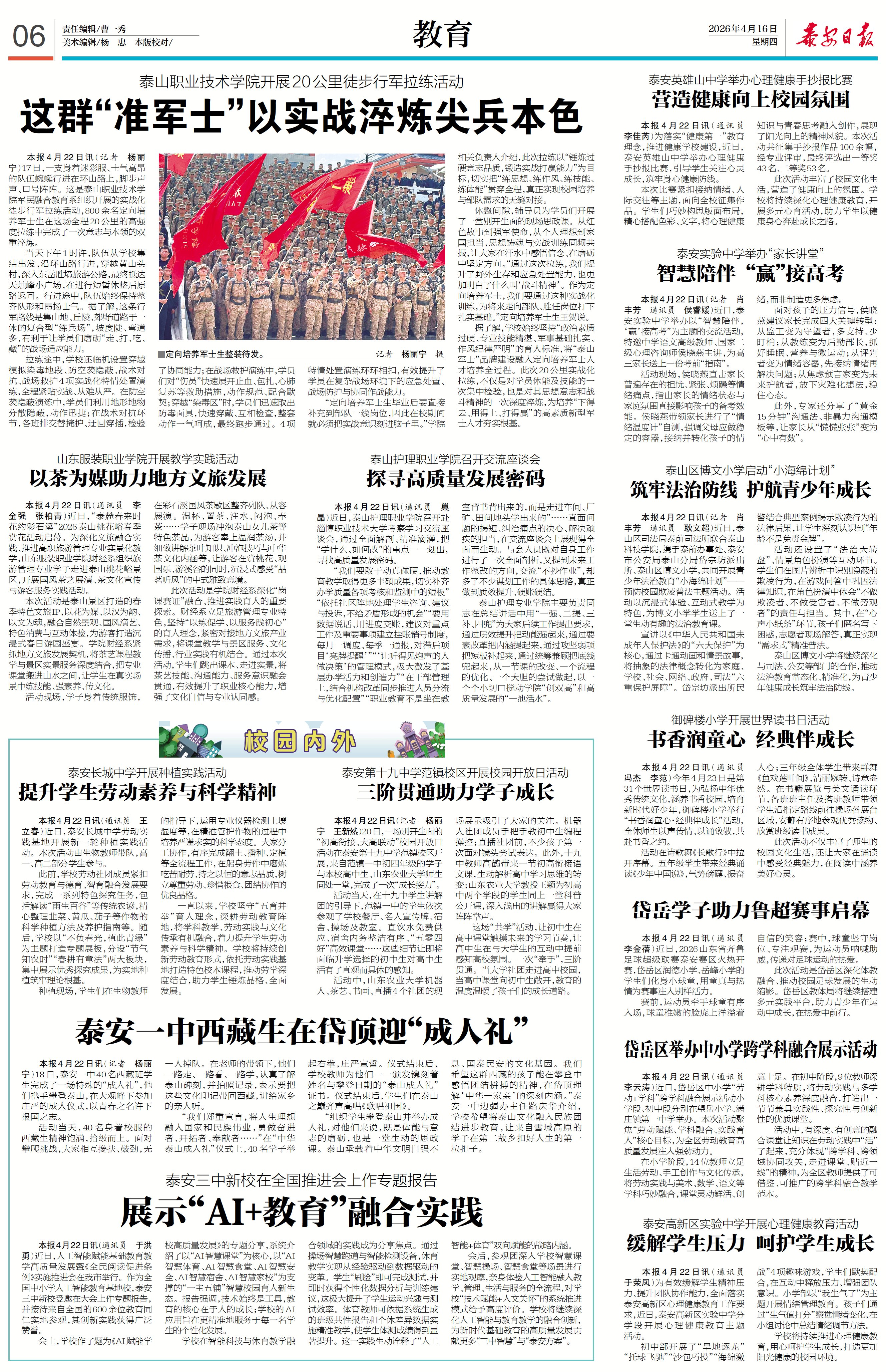 【泰安日报】泰安长城中学开展种植实践活动提升学生劳动素养与科学精神