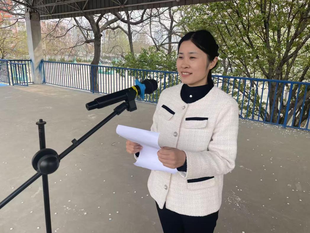 高二年级副主任侯衍莉老师作国旗下演讲。她带领全体师生回望百年风雨征程,追忆不同时期的英雄模范,深情讲述英烈们以热血护山河、以生命守家国的感人事迹。她勉励广大同学:以英烈为榜样,传承爱国精神;立足当下、勤学笃行、勇于担当,将爱国之情化为报国之行,用青春奋斗续写民族复兴新篇章。