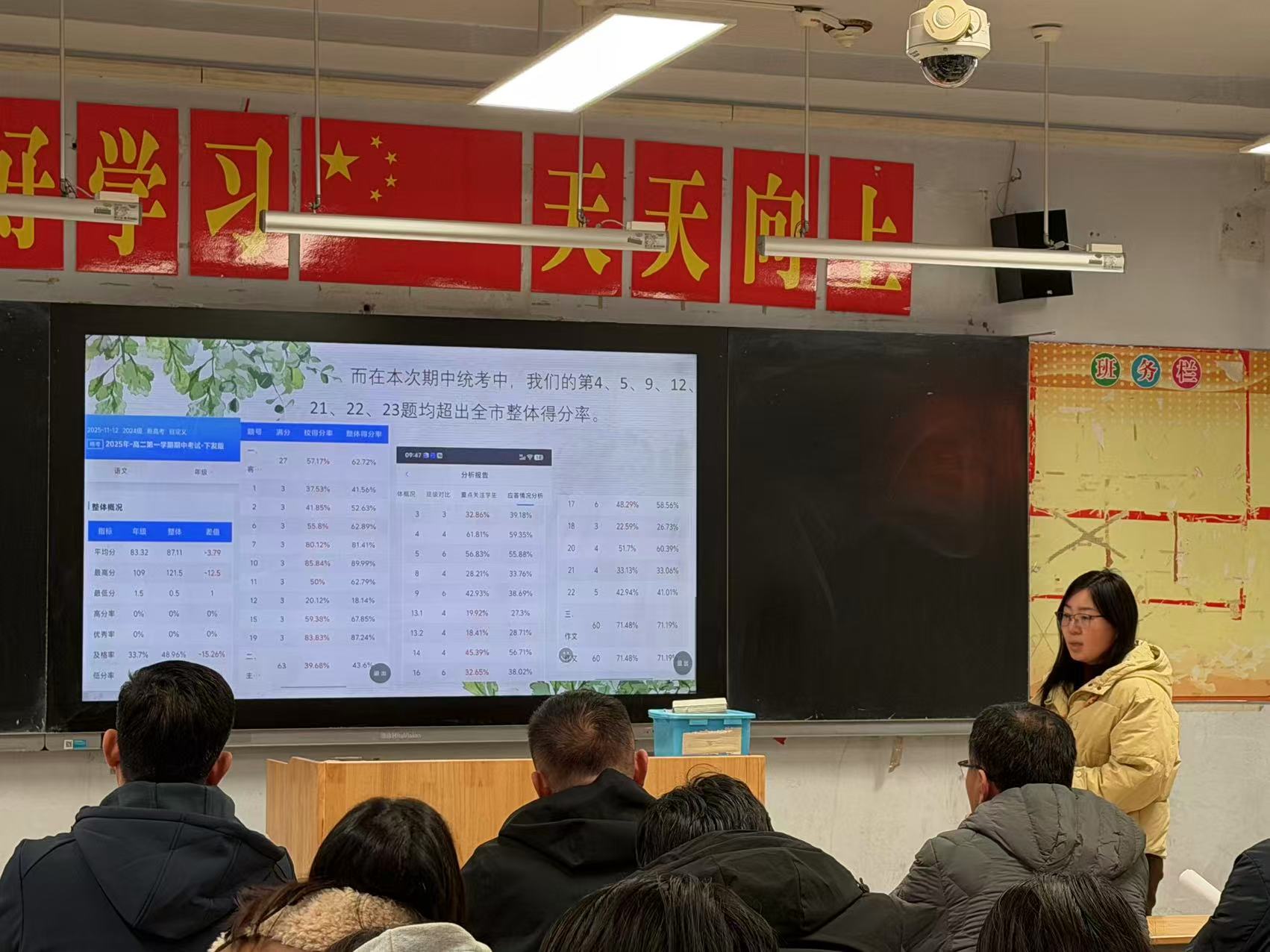 会议伊始,年级主任范新国依托详实的数据,从整体成绩、学科优势、班级均衡等维度对期中成绩进行了全面分析,肯定了前期在夯实基础、培养习惯等方面取得的阶段性成效,也客观指出了年级、班级管理及学科教学层面存在的具体问题,为精准实施教学改进提供了清晰导向与坚实依据。