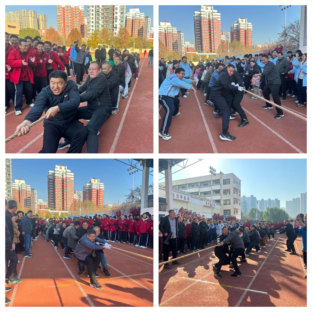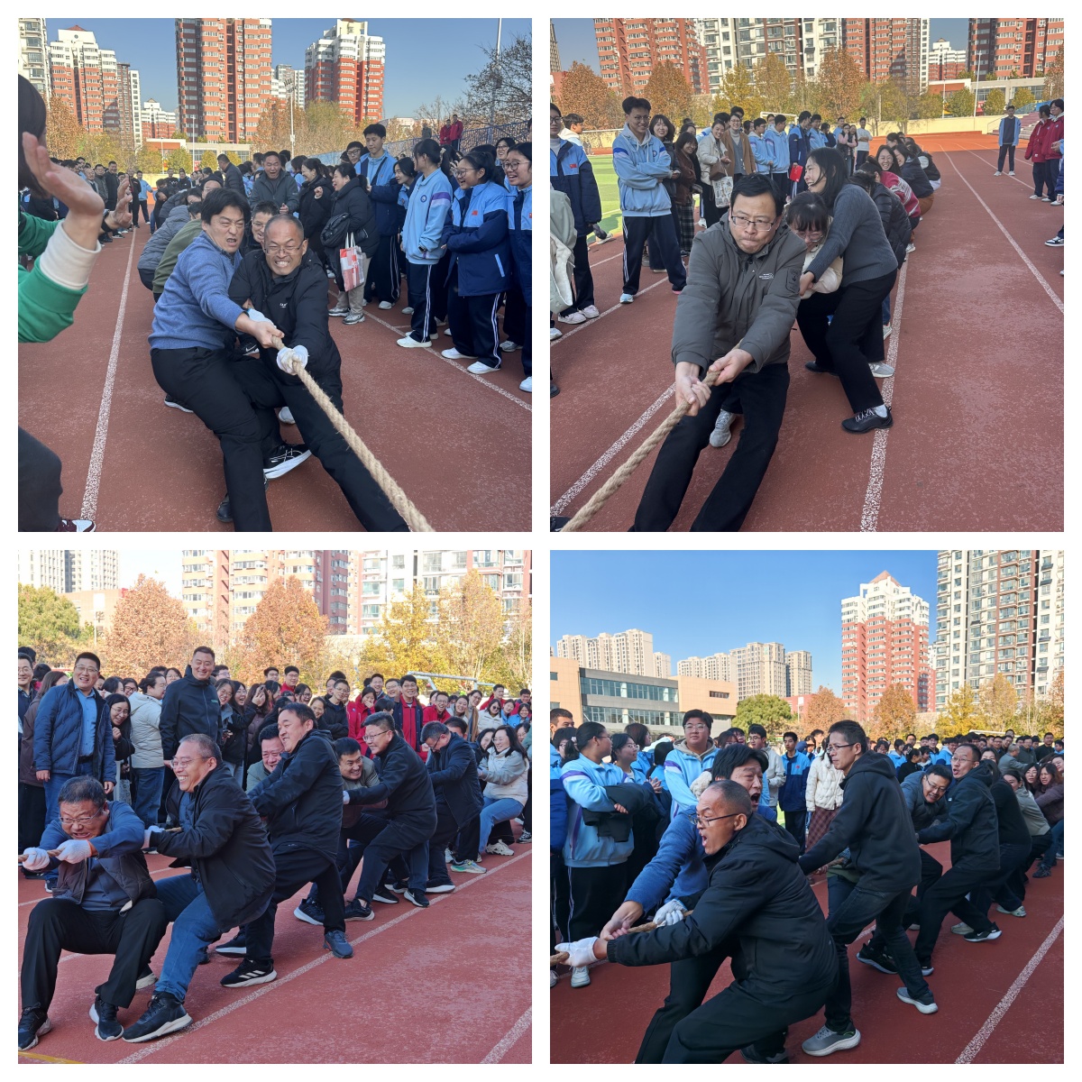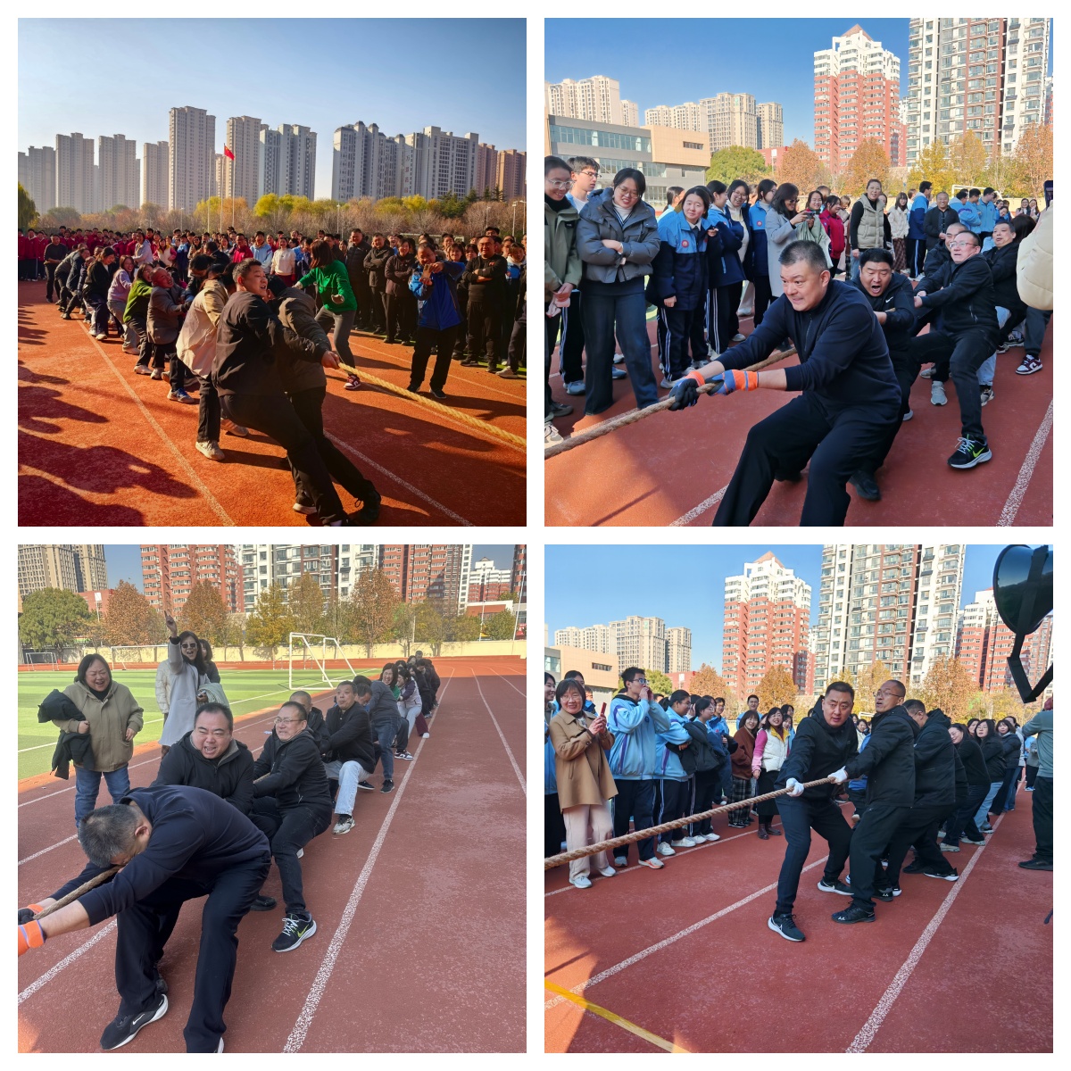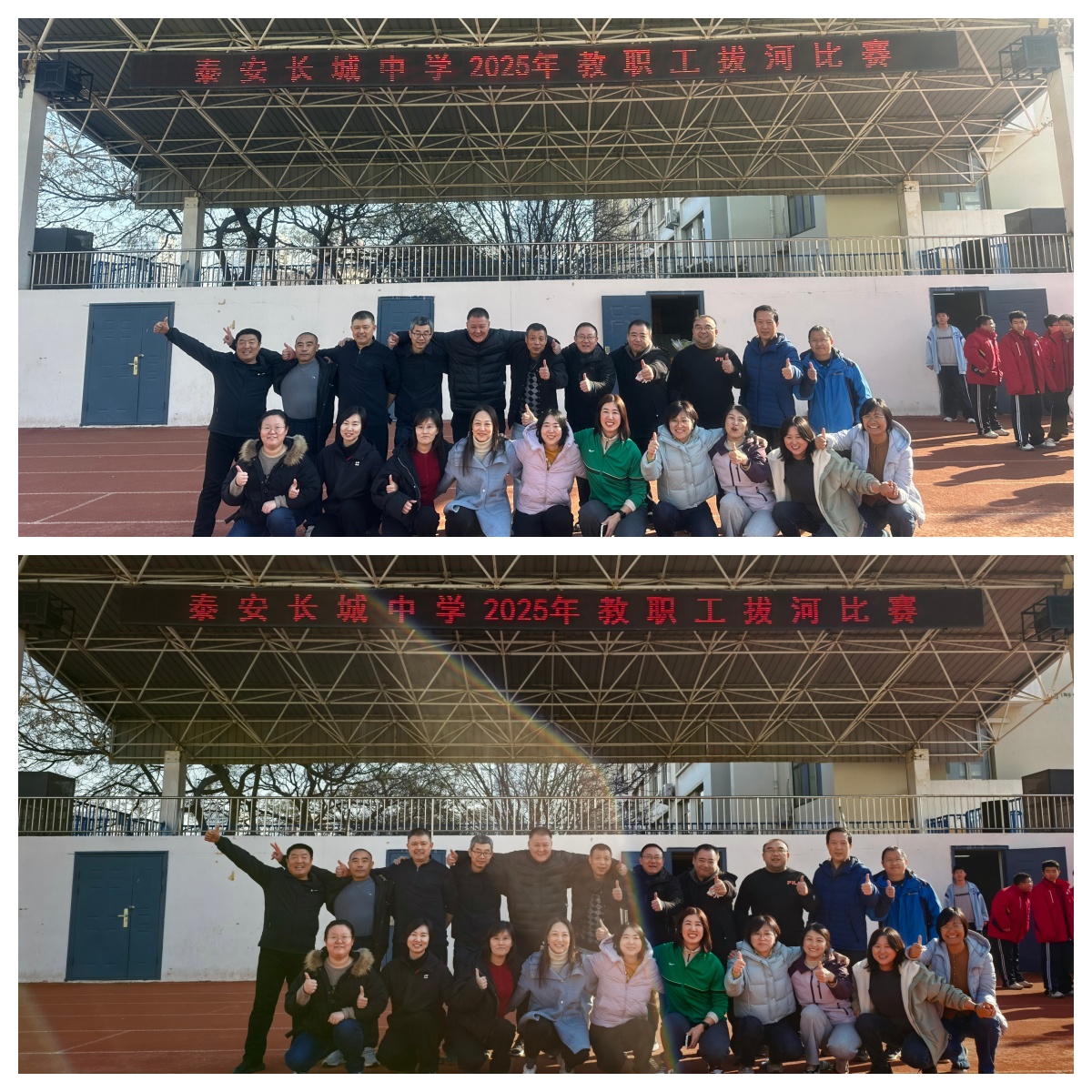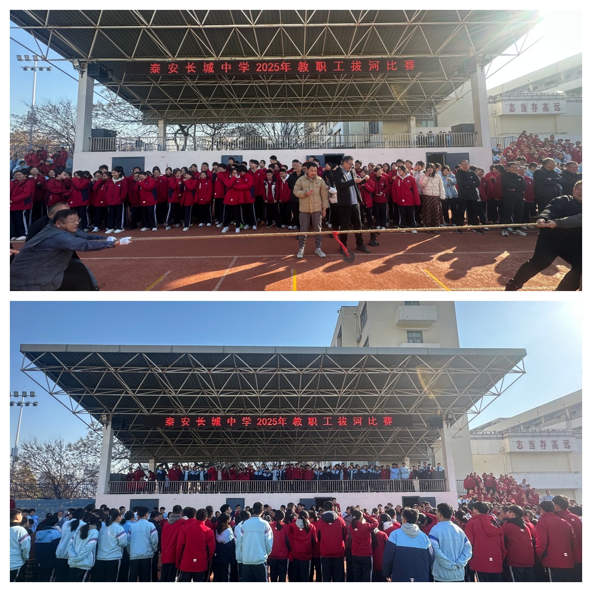 为丰富教职工文体生活,增强团队凝聚力,11月21日上午,泰安长城中学2025年冬季教职工拔河比赛在田径场激情开赛。全体教职工共同参与,共分为四个工会组——高一、高二、高三、行政后勤组,每组20人10男10女,在冬日暖阳中上演了一场力与美的团队盛宴。