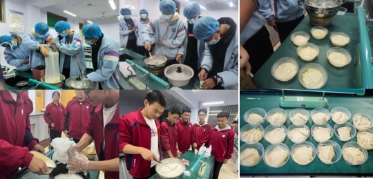 活动中,指导老师结合学科知识,为学生讲解大豆蛋白变性、胶体聚沉等豆腐制作背后的科学原理,现场示范浸泡、研磨、煮浆、点卤、压制等关键步骤。同学们分组协作、分工明确,认真完成每一个操作环节,遇到问题及时请教,在反复尝试中掌握技巧。大家纷纷表示,这次活动不仅学会了豆腐制作的技能,更深刻体会到化学与生物学科的紧密联系,原来生活中看似简单的美食,背后蕴含着丰富的科学原理。指导老师也表示,此次跨学科合作活动,打破了学科壁垒,让学生在实践中深化对知识的理解,提升了动手能力与团队协作意识,为后续开展更多跨学科实践活动奠定了基础。