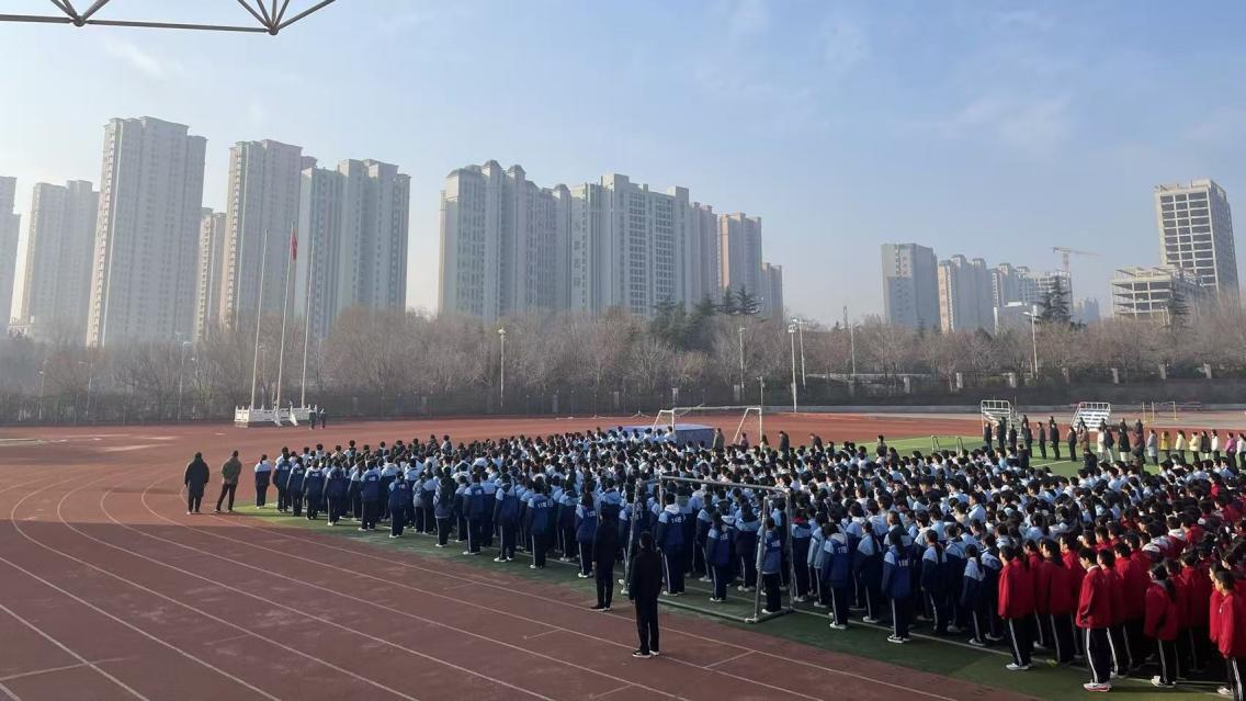 2025年12月29日上午,泰安长城中学师生齐聚操场,举行2025年最后一次升旗仪式。伴随着雄壮的《义勇军进行曲》,五星红旗冉冉升起,师生们肃立注目,满怀着崇敬与憧憬,为即将过去的一年致敬,为崭新的一年蓄力。升旗仪式后,政教处主任王磊老师发表“以坚定的理想之光 照奋进之路的辉煌”主题演讲。