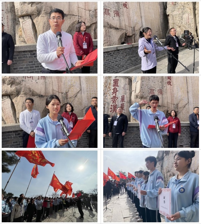 泰山之巅大观峰上,庄严的成人礼仪式正式启幕。本次仪式由学校党委委员、副校长孔庆国主持,学校党委书记陈佳敏,党委委员、副校长周晓亮,党委委员、副校长李化友,党委委员王德峰等校领导班子成员出席,活动保障组教职工、家长代表共同参与,见证学子们迈入成年的重要时刻。孔庆国副校长向顺利登顶的全体同学致以热烈祝贺,向为活动辛勤付出的工作人员、老师与家长致以诚挚感谢。他表示,这场成人礼不仅是对体魄与意志的锤炼,更是一场深刻的成长洗礼,愿同学们在攀登中感悟坚守的力量,在仪式中铭记肩上的担当。